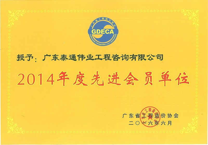2014年先进会员单位(省造价协会)