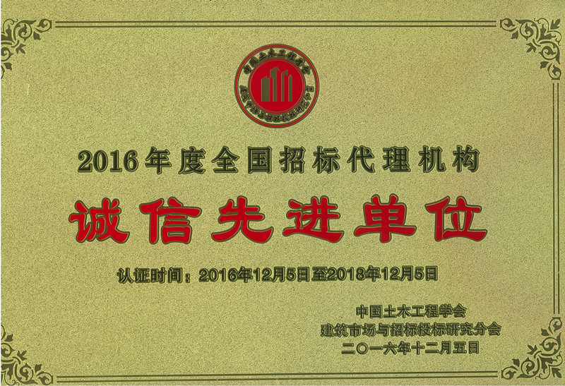 2016年全国招标代理机构诚信先进单位