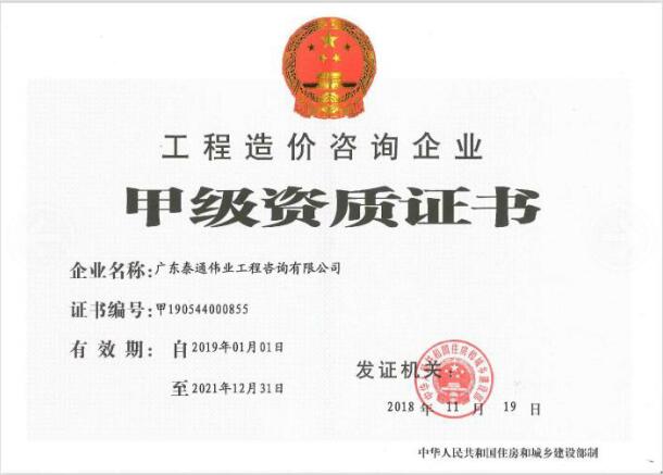 泰通伟业造价资质正本