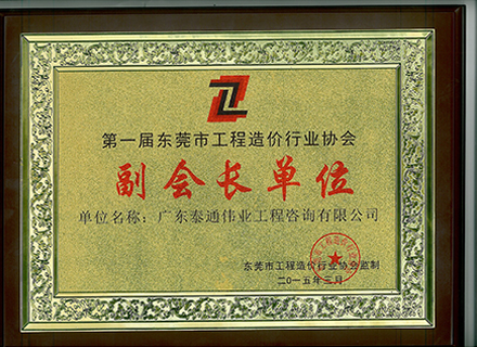 东莞市工程造价行业协会副会长单位证书